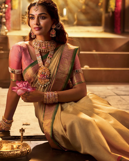 Indulge in the unmatched lustre and softness of our pure silk sarees. Each piece is a masterpiece of traditional weaving, featuring intricate zari work and vibrant colours that tell a story of regal heritage. Perfect for weddings, festivals, and grand celebrations, these sarees are designed to make you shine.